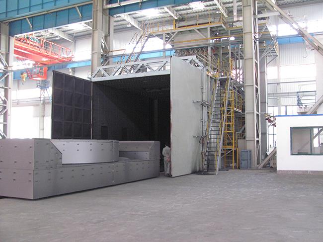臺(tái)車(chē)式拋丸機(jī)是利于拋丸器把高速旋轉(zhuǎn)的彈丸拋向旋轉(zhuǎn)的臺(tái)車(chē)上面時(shí),清潔工件表面的粘砂、氧化皮以及其他雜物,從來(lái)得到一定粗糙度的并且光亮的表面,噴丸主要是對(duì)拋丸機(jī)復(fù)雜內(nèi)腔做進(jìn)一步的清理工作。